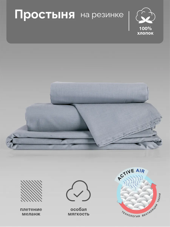 Меланжевая ткань создается благодаря особому диагональному плетению волокон разного оттенка и цвета. Для производства этой ткани используются тонкие нити из 100% хлопка, что придает ткани особый «дышащий» эффект и превосходную терморегуляцию, а тактильные ощущения дарят удовольствие, как от прикосновений к шелку. Технология ACTIVE AIR способствует комфорту, легкости и отличной регенерации кожи, во время одного из самых важных процессов жизни - сна. Нанесенный на ткань натуральный состав, позволяет использовать изделия без тщательного отглаживания.