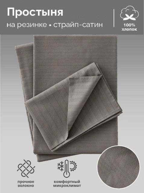 Простынь на резинке Verossa. Простыня натяжная из страйп сатина с повышенной линейной плотностью ТС 200 (количество нитей на дюйм в полотне). Коллекция Verossa - роскошный домашний текстиль высокого качества с уникальными свойствами. Ткань страйп-сатин подарит комфортный сон, а красивый узор из матовых и блестящих сатиновых полос украсит спальню в доме. Натяжная простыня с резинкой по периметру разработана специально для надёжного крепления на матрасе. Простыня на резинке 160х200 см представлена в 6 цветах: белый, серый, бежевый, розовый, перламутровый, черный. Составьте новый комплект постельного белья или дополните уже имеющийся другими наборами текстиля для спальни Verossa: наволочками, пододеяльником, простыней классической и на резинке. Постельное белье, одеяла и подушки Verossa- идеальный подарок на день рождения и любой семейный праздник для себя и близких. Создайте стильную спальню в своем стиле, как с обложки!