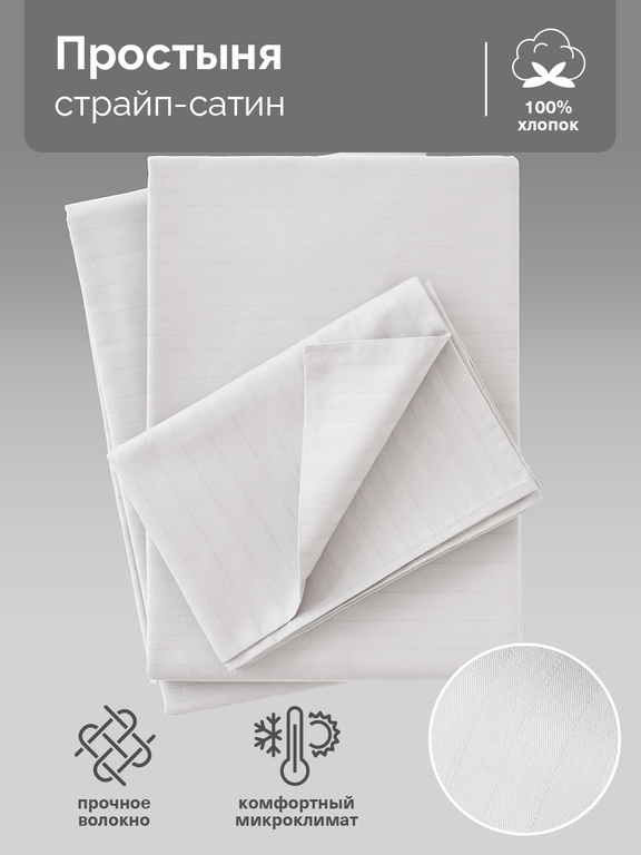 Простыня Verossa, страйп-сатин, 100% хлопок, повышенная плотность 120г/м2. Verossa - изысканный домашний текстиль исключительного качества. Постельное белье коллекции обладает уникальными свойствами. Для его производства используют 100% хлопок и гипоаллергенные красители. Пододеяльник отличается высокой износостойкостью и сохранит яркость цвета, форму и мягкость даже спустя множество стирок. Благодаря особому способу плетения нитей весь текстиль Verossa неприхотлив в уходе, практически не мнется и не дает усадки. Во время сна ткань обеспечит максимальный комфорт - она превосходно пропускает воздух и хорошо проводит тепло. Пододеяльник Verossa из страйп-сатина - это идеальный подарок, который можно сделать себе и близким! Он прекрасно дополнит интерьер и позволит насладиться отдыхом в любое время года.